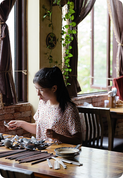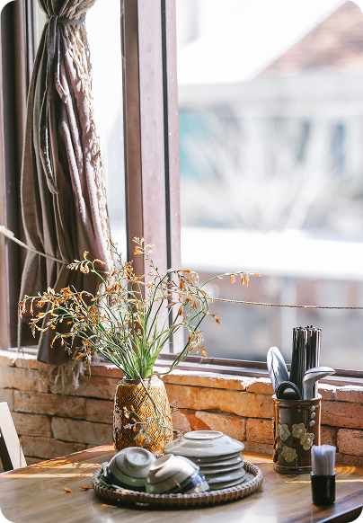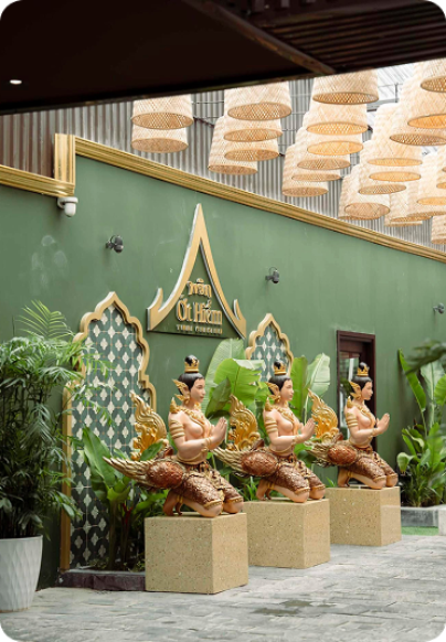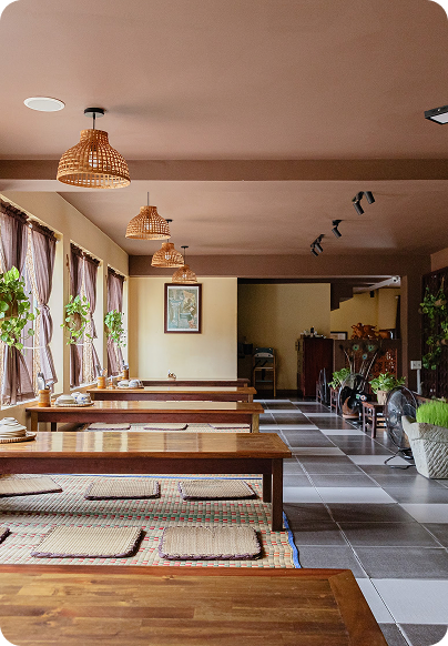 Từ chiếc bàn gỗ xưa cũ, bát đũa gốm men rạn, đến tiếng nhạc quê hương vang nhẹ trong quán – tất cả như một lời mời gọi dịu dàng: “Về nhà ăn cơm thôi!”